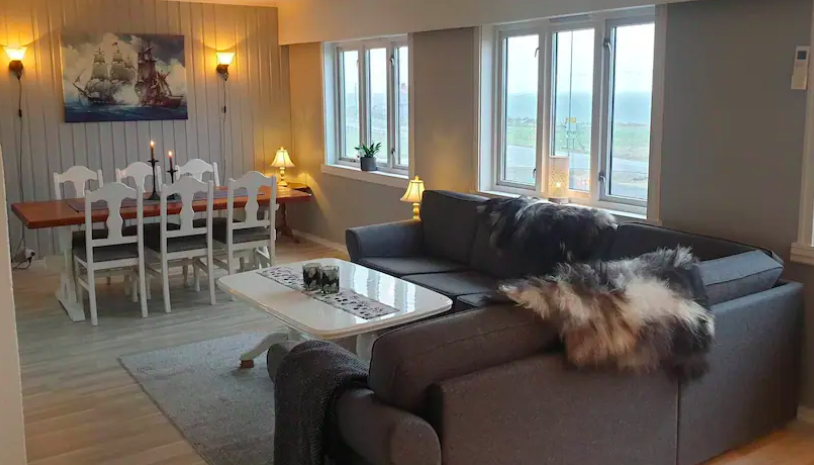 2 domki położone nad fiordem w wioskach Barstrand i Saupstad. Każdy domek posiada kilka sypialni, część wypoczynkową, jadalnię i w pełni wyposażoną kuchnię. Oddalone są od siebie o 8 min drogi. Zakwaterowanie w pokojach 2 osobowych, 1 łazienka na domek.