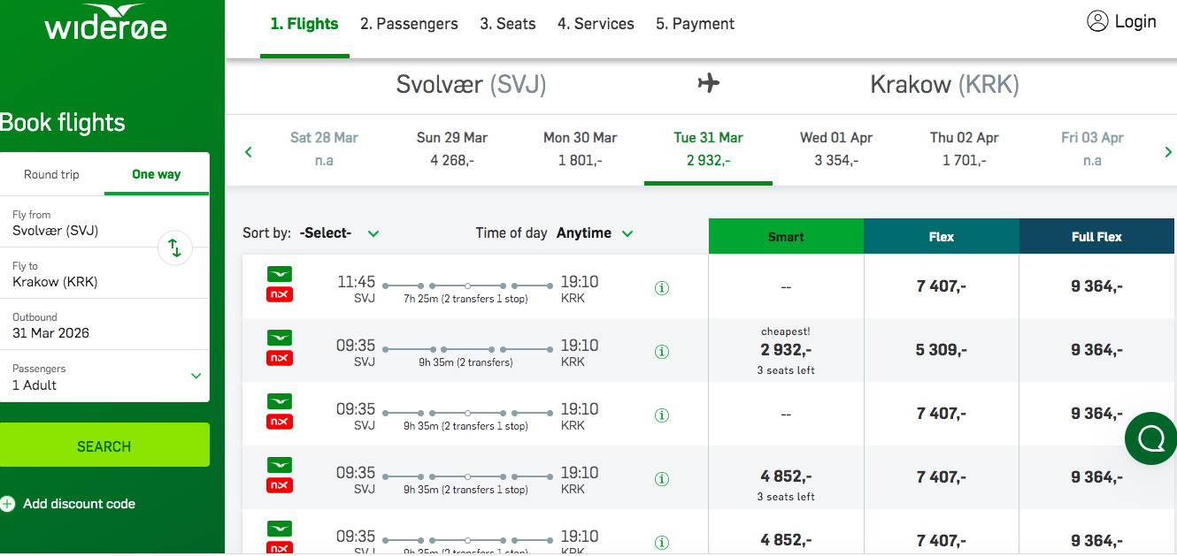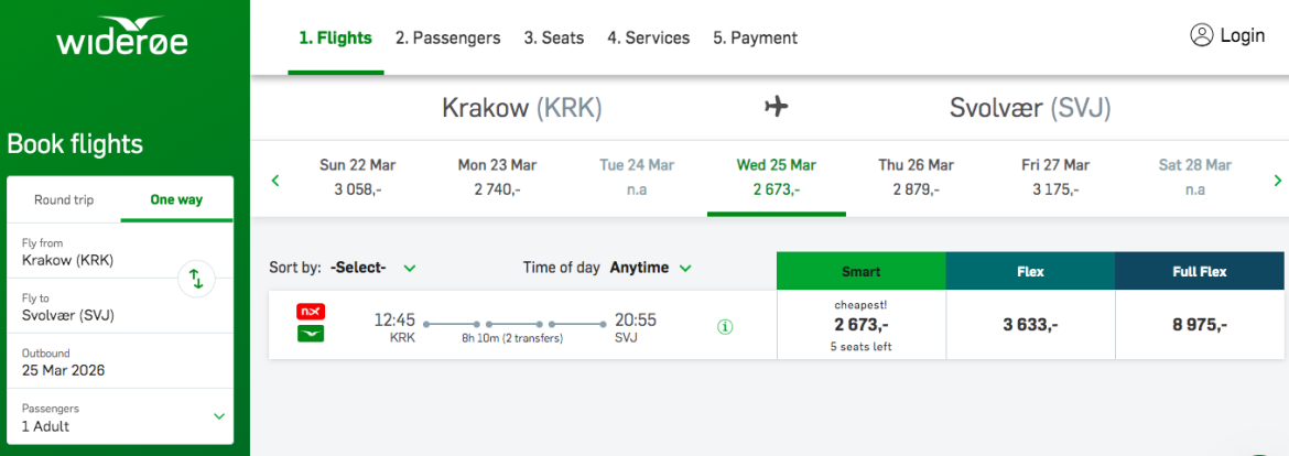 - Koszt biletu kupowanego przez nas to 3300zł. W cenie jest przelot z/do Kraków – Svolvær, bagaż 23kg + przewóz jeden pary nart i kijków