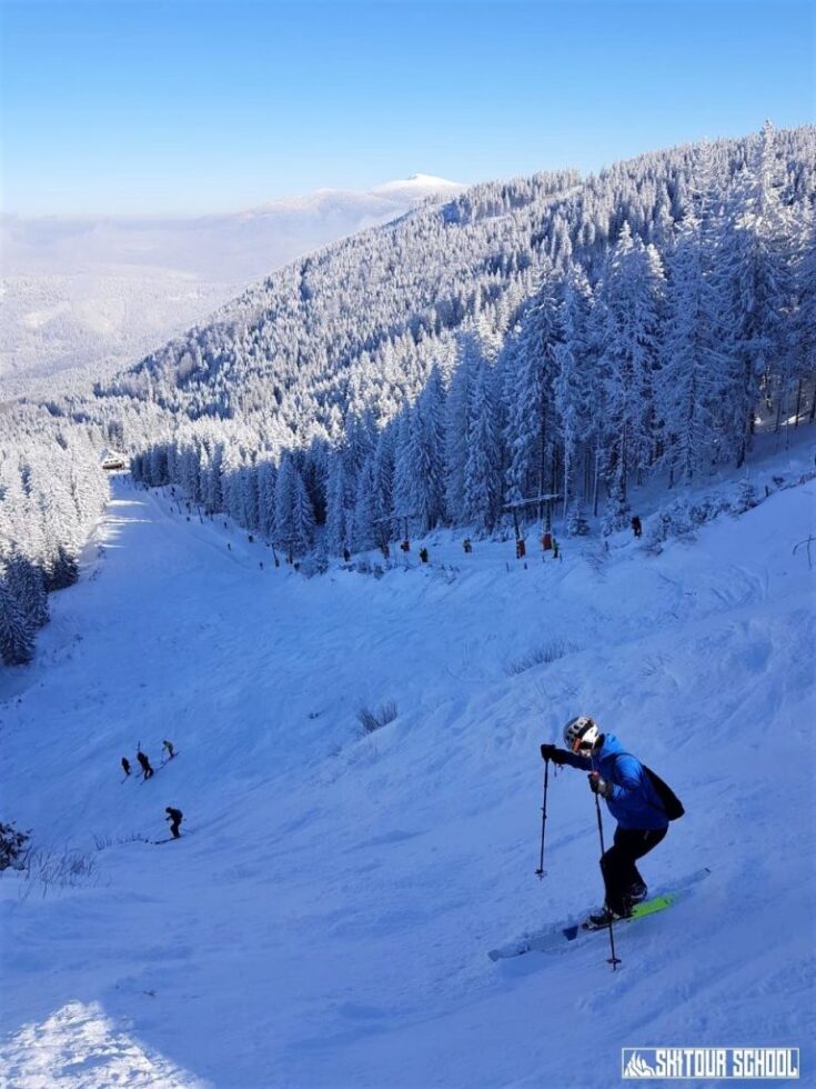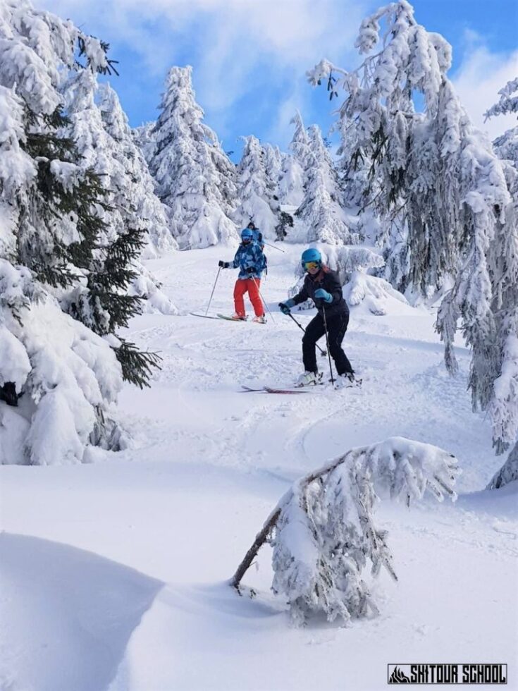 - 9:00 – 11:30 – pierwszy blok zajęć w podziale na grupy; wyjazd kolejką do najwyższej stacji, przejście na skiturach 20 minut na szczyt Pilska zjazd poza terenem przygotowanym