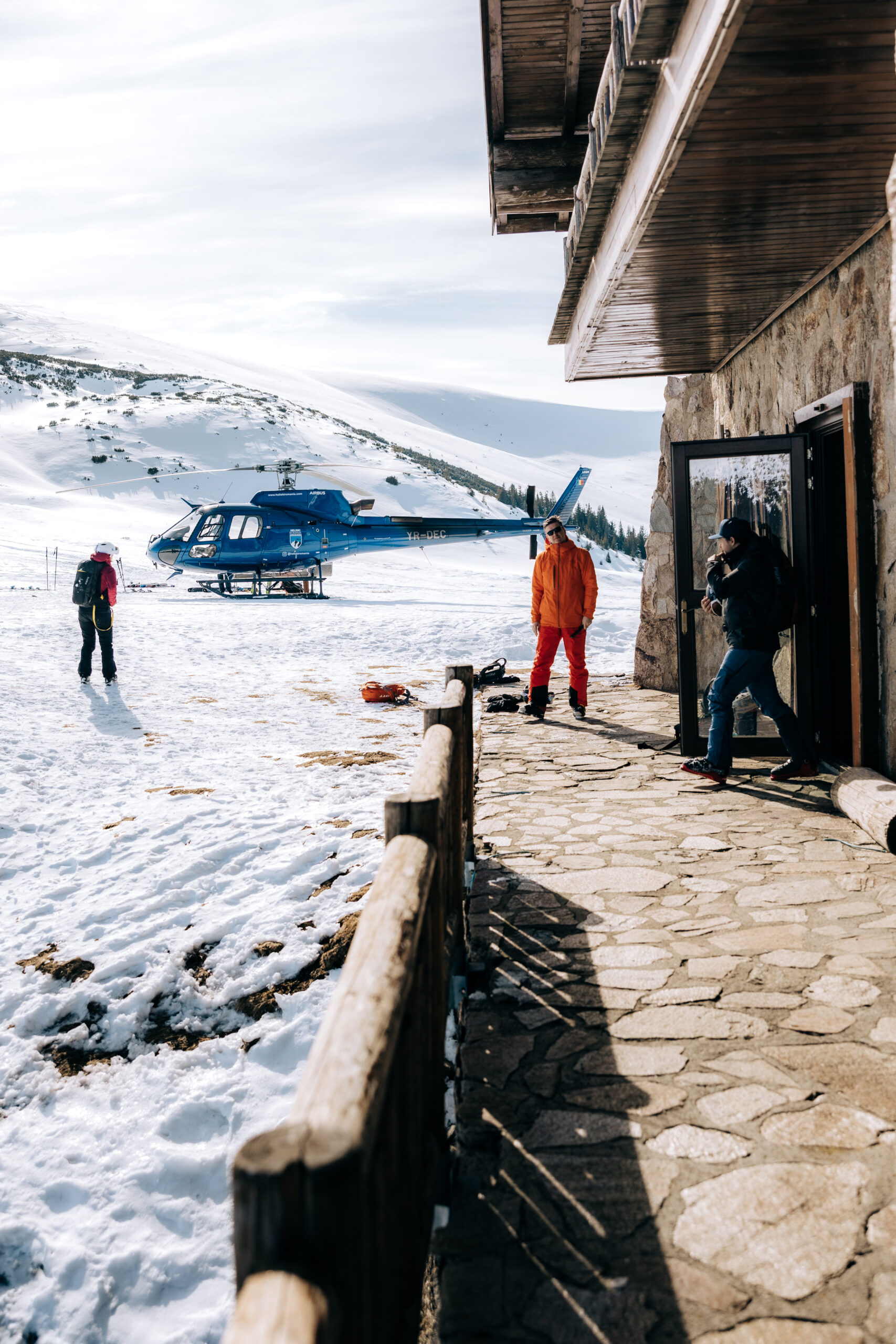 • 9:00-15:00 – helicat – rano helikopter zabiera nas i przewozi do doliny, gdzie uwięziony jest ratrak, który bedzie wywozić nas przez resztę dnia. Po zjeździe ponownie zabiera nas helikopter i ostatni zjazd robimy prosto do chaty