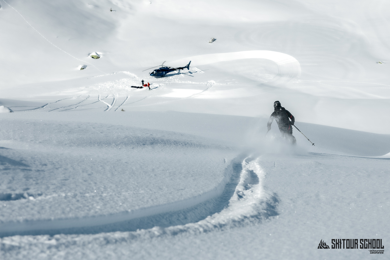 - Mamy małe grupy (grup jest kilka)– do helikoptera wchodzi max 4 osoby + międzynarodowy przewodnik IFMGA (podczas heli) + organizator ze Skitour School;
