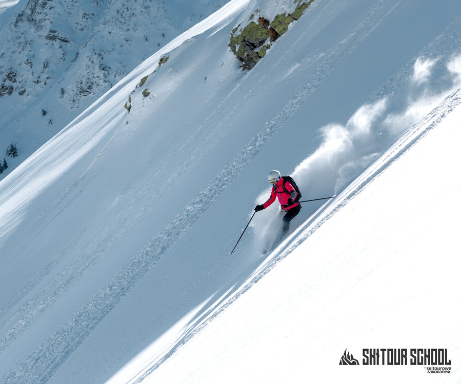 - komplet sprzętu narciarskiego skiturowego lub freerideowego – narty o szerokości co najmniej 90 mm pod butem (możliwość bezpłatnego testowania nart freetourowych VOLKL- każdemu chętnemu uczestnikowi dopasujemy narty testowe, buty zjazdowe, freerideowe lub skitourowe (z wysokim flexem),